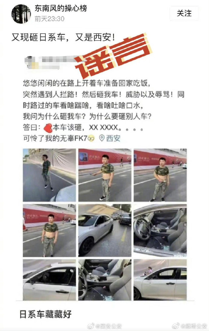 网传“排完核废水就开始砸日本车”?西安辟谣