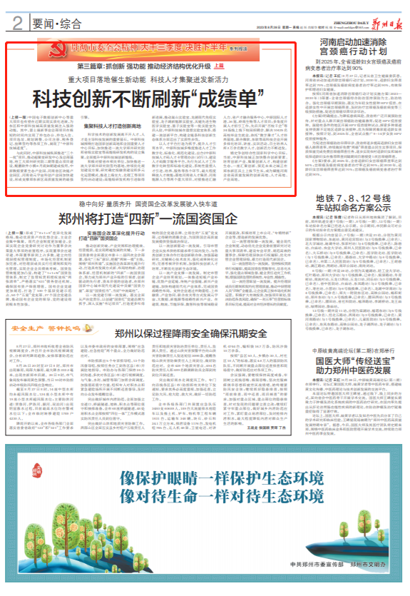 科技创新是高质量发展的“基因”。今年以来,中原科技城扎实开展“三标”活动、深入推进“十大战略”行动,锚定建设综合性国家科学中心的建设目标,推动“三合一”融合、招商引资、一流大学郑州研究院建设等各项工作取得新突破,让中原科技城这座硬核的科技之城、创新之城矗立中原大地。