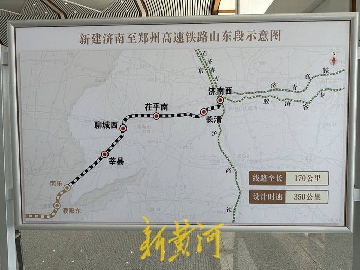 济郑高铁位于山东省西部、河南省东北部,连接济南、郑州两省会城市,线路呈东北至西南走向。济郑高铁山东段线路全长170公里,设计时速350公里,新建长清、茌平南、聊城西、莘县4座车站,引入既有济南西站、济南站,于2020年6月开工建设,2023年7月开始静态验收。