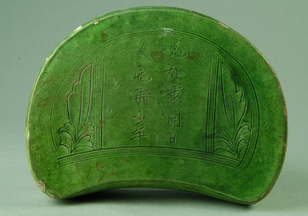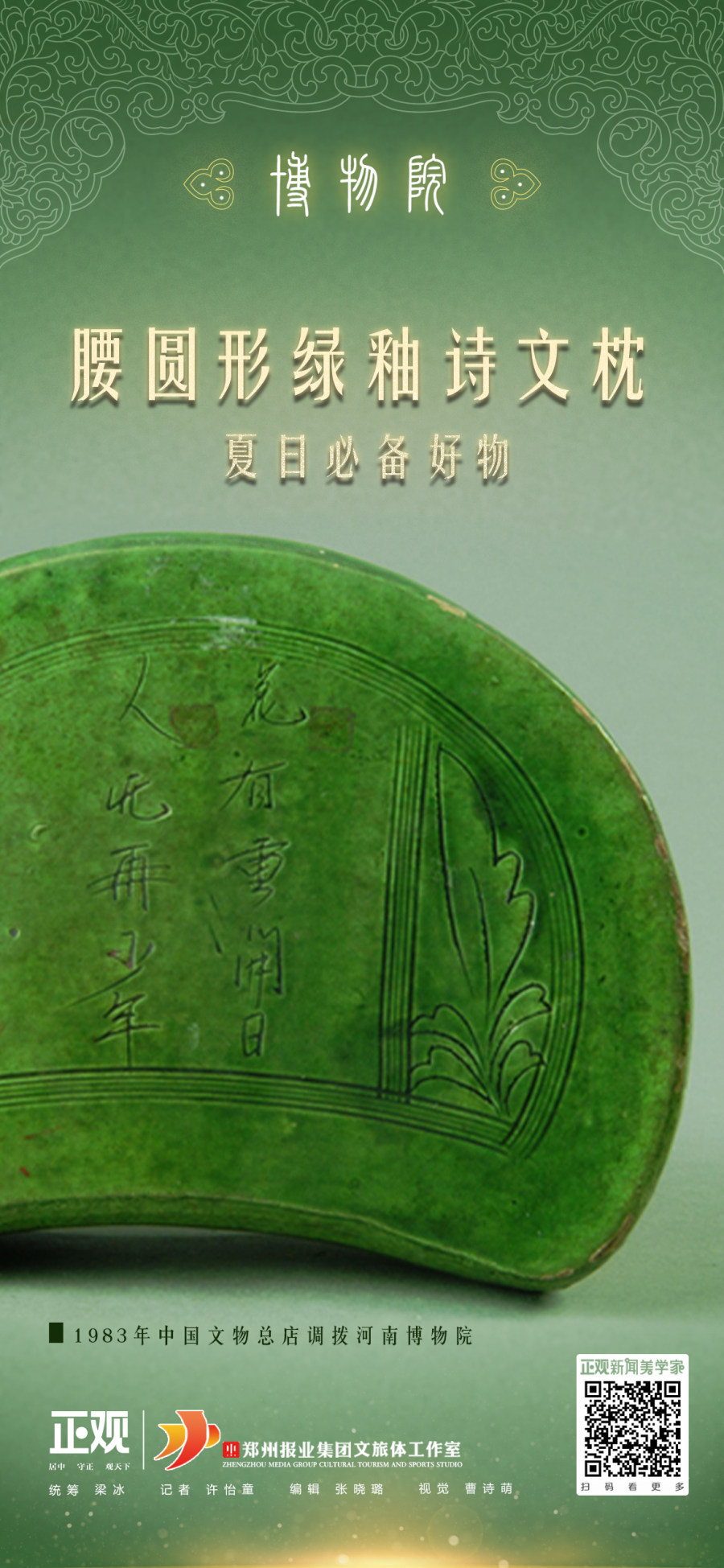 博物院丨腰圆形绿釉诗文枕:夏日必备好物