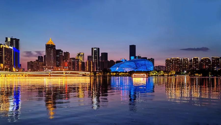 沈阳浑河夜景,“大钻石”为盛京大剧院