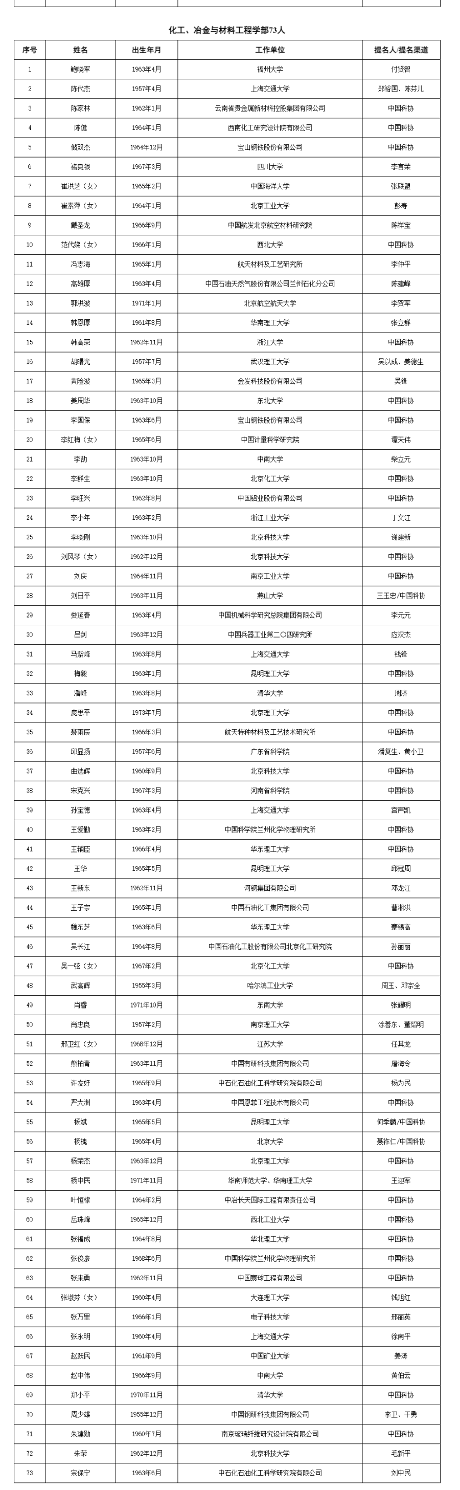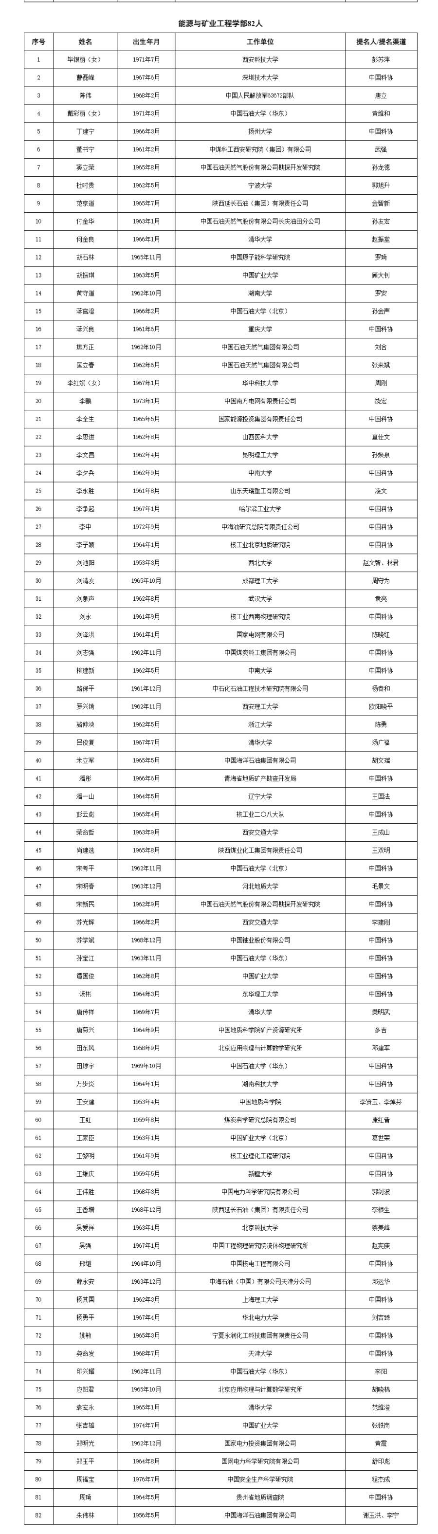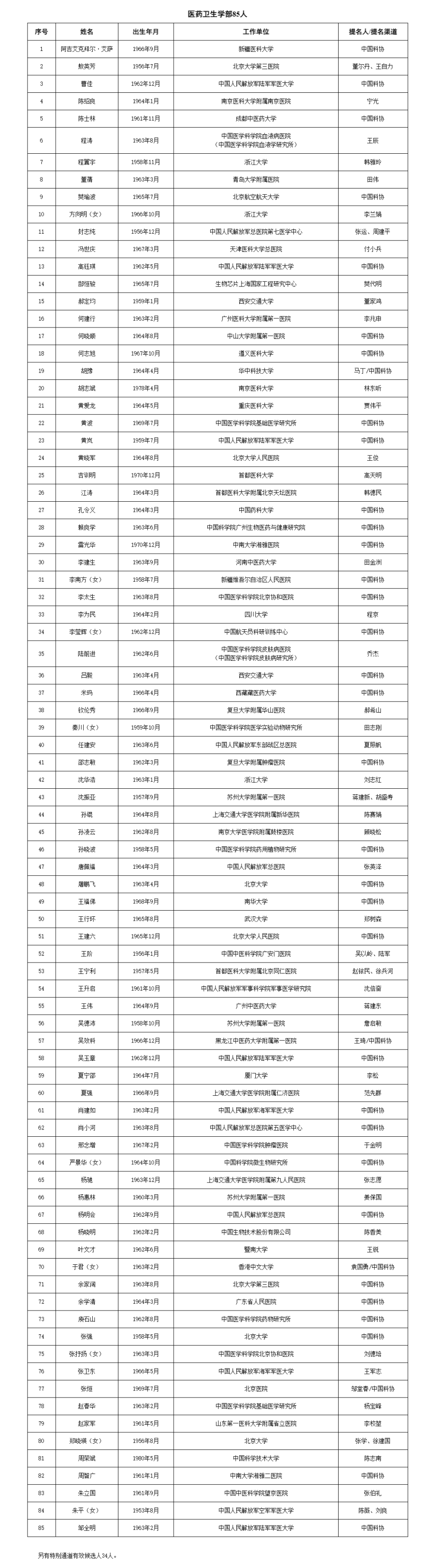 两院院士增选有效候选人完整名单如下: