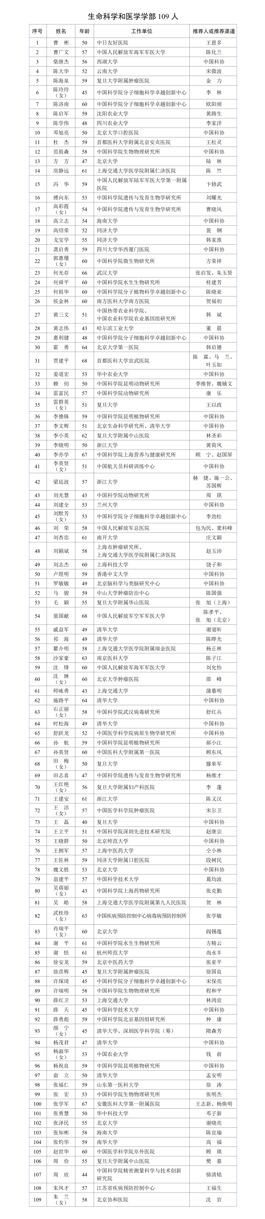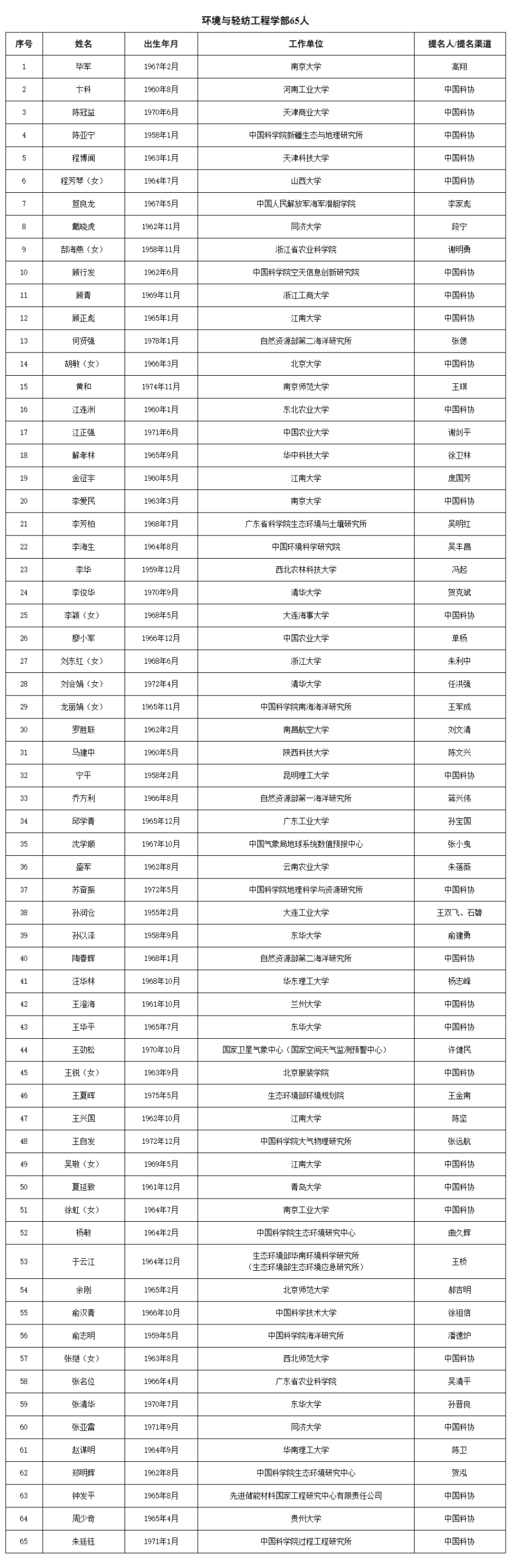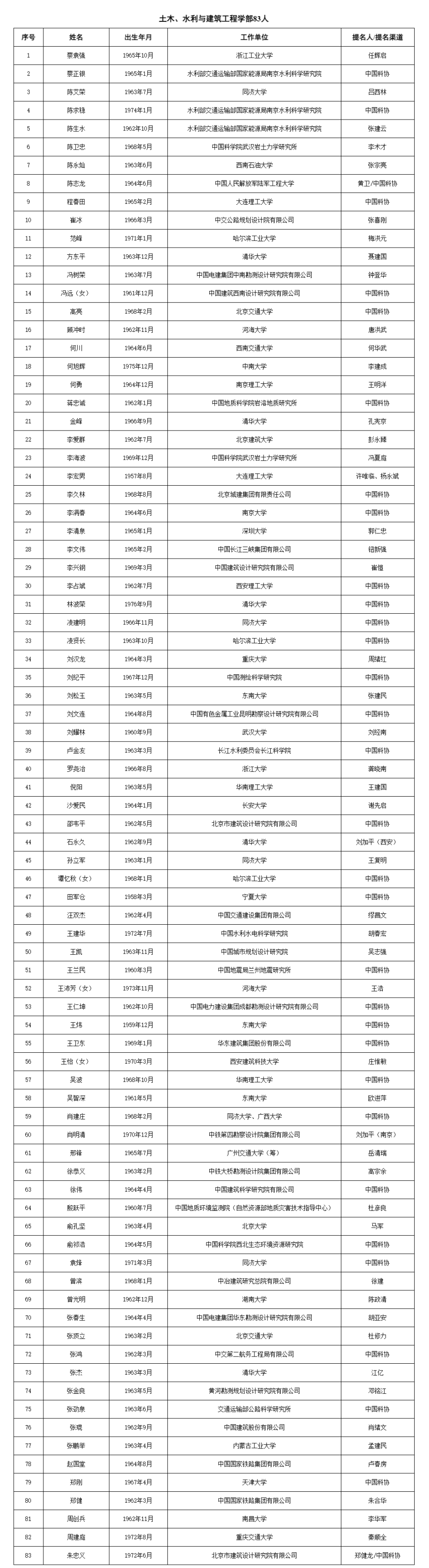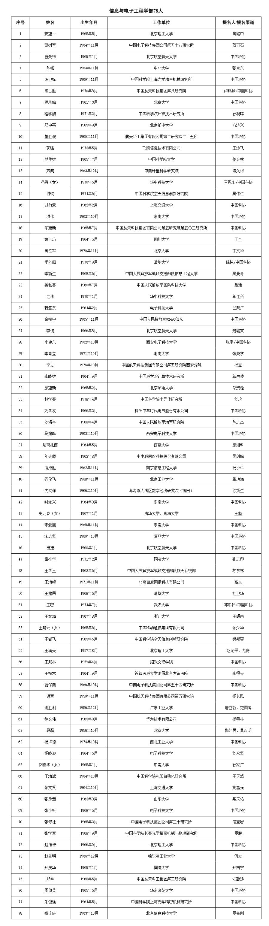 两院院士增选有效候选人完整名单如下: