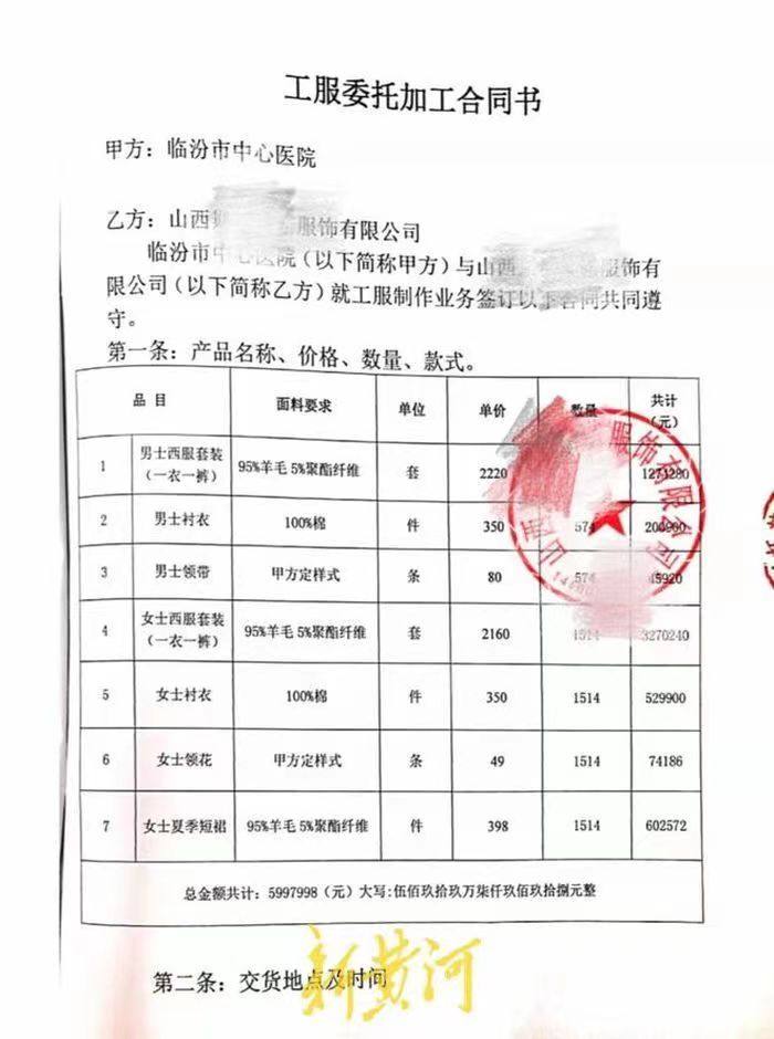 近日,山西临汾市中心医院花费近600万元购置工服一事,引起广泛争议。其中,男士西服套装单价为2220元、女士西服套装单价为2160元,男女衬衣单价350元。对此,临汾市卫生健康委员会相关工作人员回应称,已知道此事,正在调查,尚无结果。(8月31日新黄河客户端)
