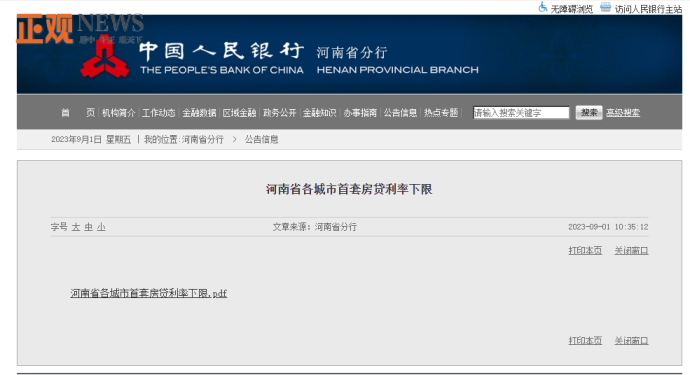 9月1日,中国人民银行河南省分行公布河南省各城市首套房贷利率下限,公布的时间段是2019年10月至今。