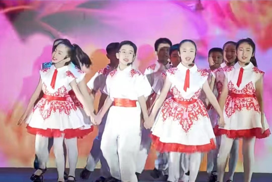 小学生们表演歌曲