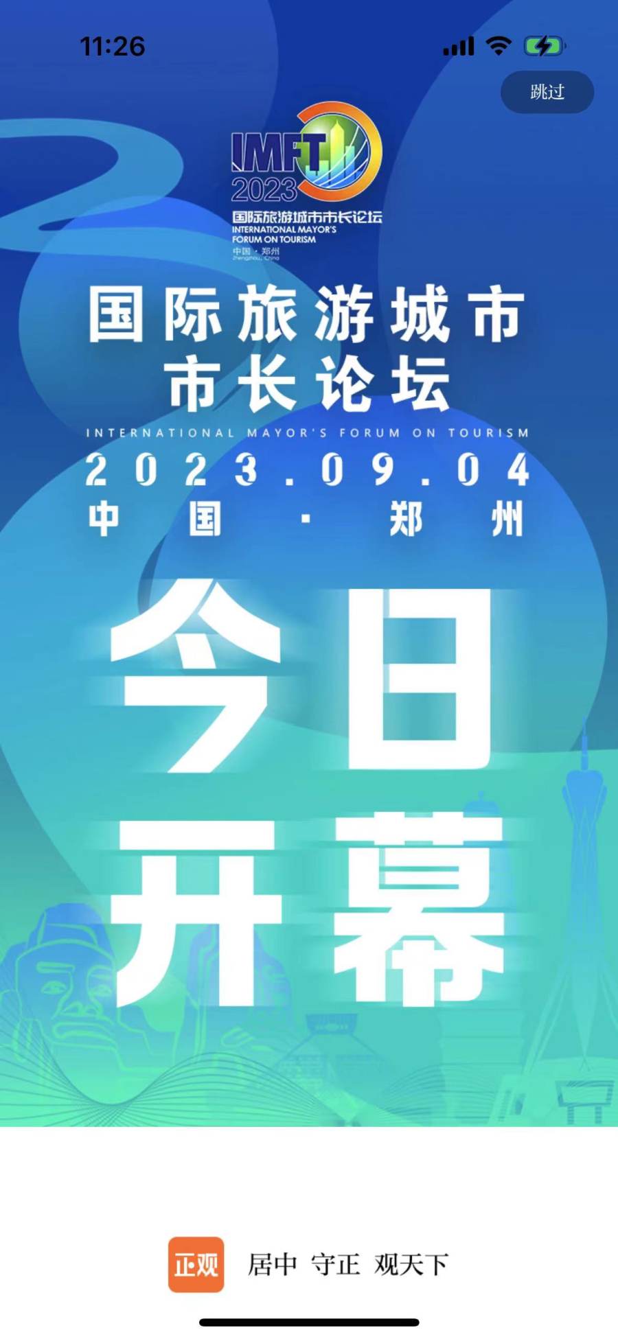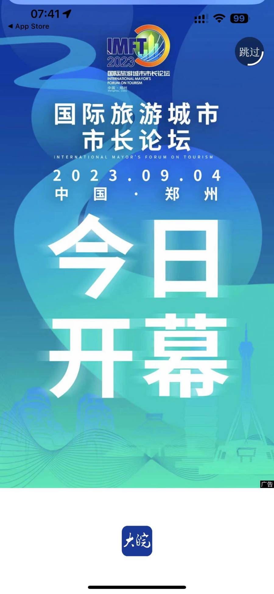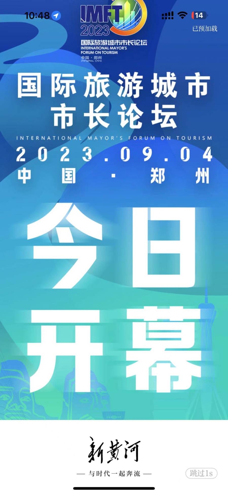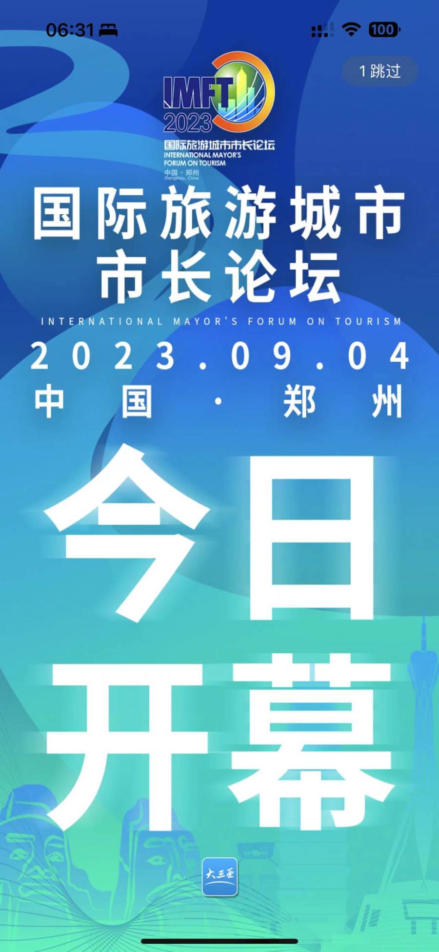 9月4日上午,2023中国(郑州)国际旅游城市市长论坛在郑州国际会展中心开幕,全国多家受邀城市主流媒体APP开屏展示,送来祝福。