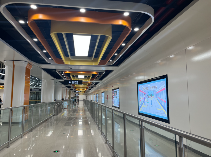 作为3号线二期特色车站,滨河新城南站是郑州市轨道交通3号线的下行终点站,为地下一层车站,站厅层和站台层共用,站台为侧式站台。为满足乘客出行需求,滨河新城南站设置了过轨通道,在轨行区下方设置跨区通道用于连接上下行站台与站厅,需要乘车或者出站的乘客可以利用过轨通道到达不同的站台和出入口。