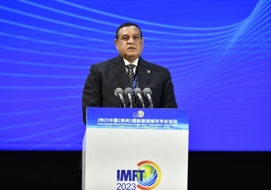 2023中国(郑州)国际旅游城市市长论坛开幕,埃及地方发展部部长希沙姆·阿姆纳作主旨演讲