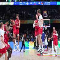 下半场,加拿大队上演了11:5的梦幻开局,一度将比分追成50:57。第四节双方先后打出得分高潮之后,博格达诺维奇成为阻击加拿大队追分势头的关键先生。终场前4分05秒,他的三分球把比分变为91:76。终场前2分12秒,他抢断后的上篮又把比分改写为95:79,加拿大队最终无力回天。