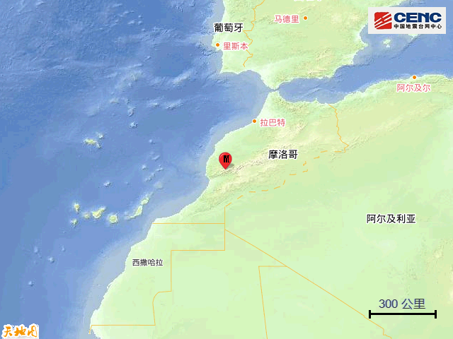周边城市:震中300公里范围内有8座大中城市,最近为马拉喀什(Marrakech),距震中约87公里。