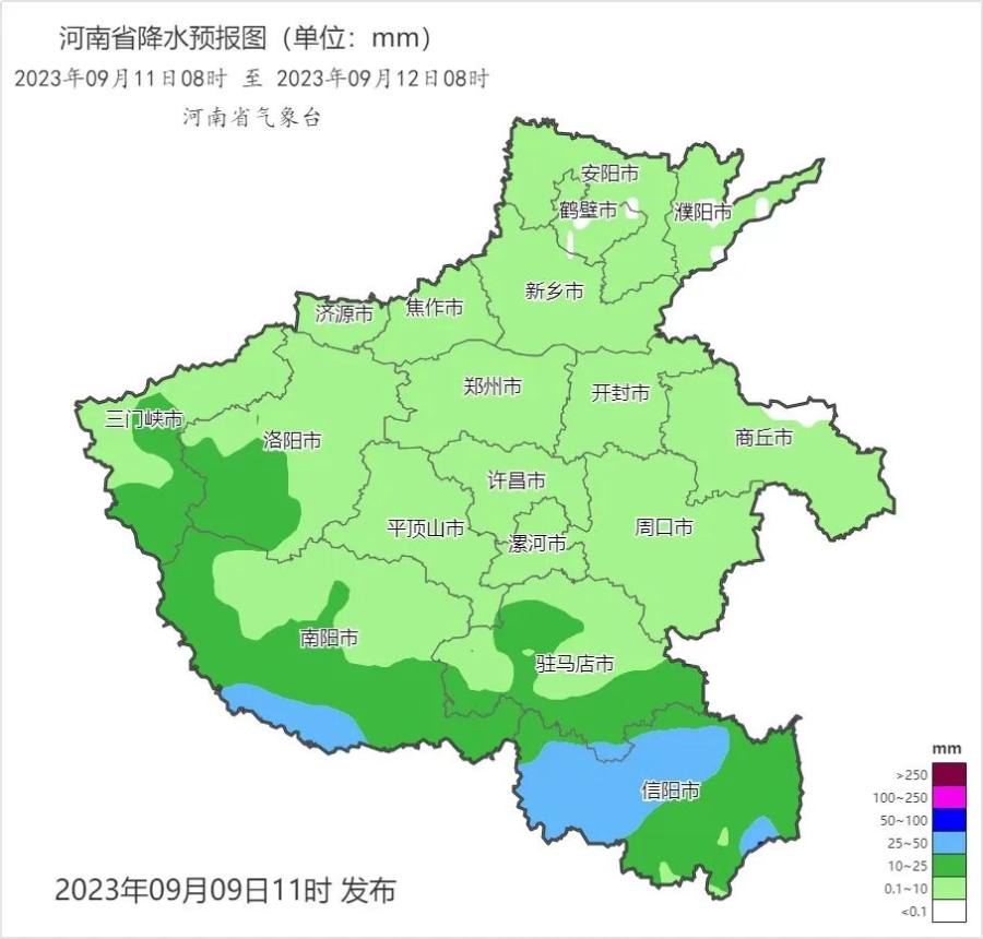 预报来源:河南省气象台2023年9月9日12时预报