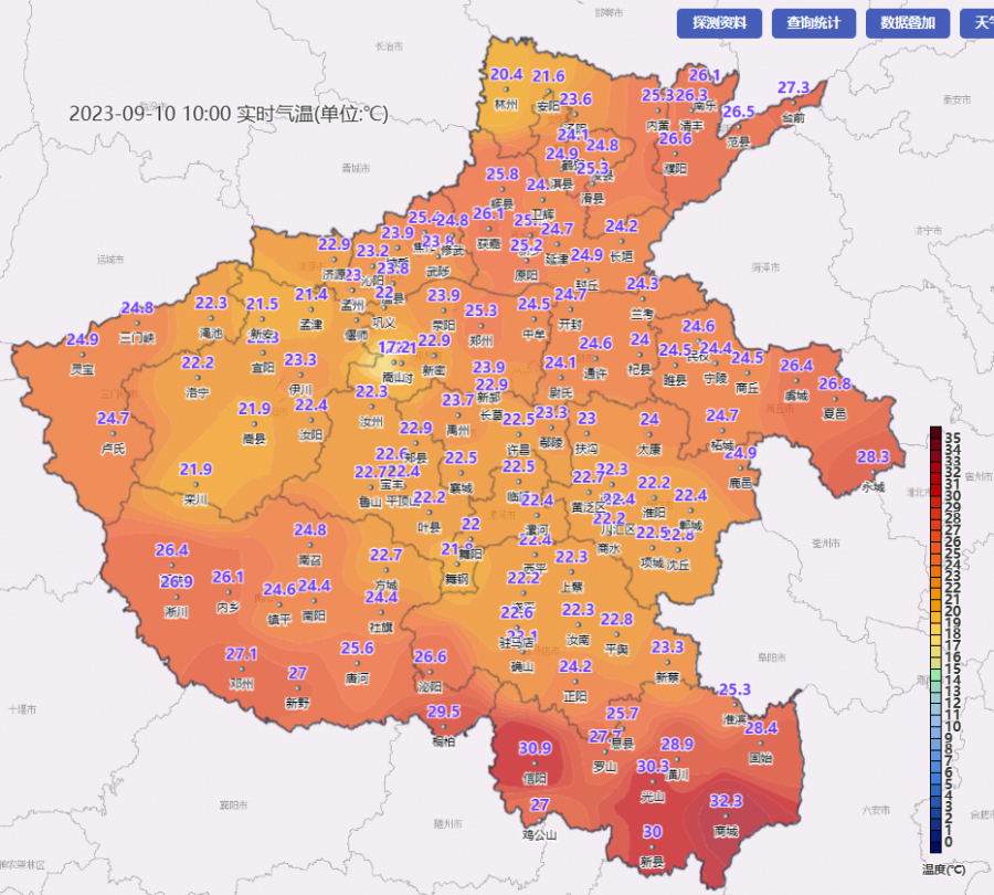 上午10时,全省大部气温在22-25℃之间