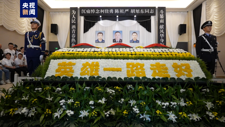 据央视新闻消息,9月10日上午,在9月5日抗洪抢险中牺牲的英雄柯佳勇、陈祖严、胡旭东遗体告别仪式在福建省福州市永泰县殡仪馆举行。