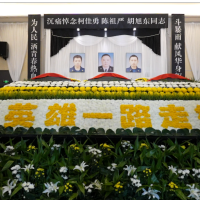 9时30分,遗体告别仪式正式开始。参加仪式的全体人员集体默哀致敬;现场介绍了三位英雄的生平事迹。参加遗体告别仪式的人们向英雄棺椁和遗像鞠躬、献花,绕灵一周瞻仰遗容,表达无尽的哀思。
