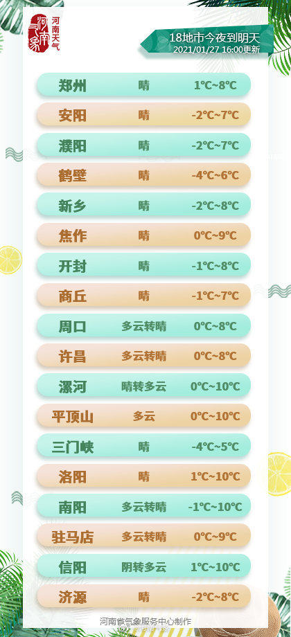 白天,受冷空气影响,全省气温会有所下降,尤其是29日清晨,最低气温会跌破0℃,需要注意及时添衣。