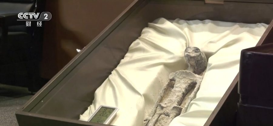 在当天的听证会上,墨西哥议会对外展出了两具疑似“外星生物”的遗骸。这两具遗骸于2017年在秘鲁被发现,距今分别有1800年和700年。遗骸的头部细长,每只手有3根手指。从遗骸中提取的DNA也显示,它们并非人类。