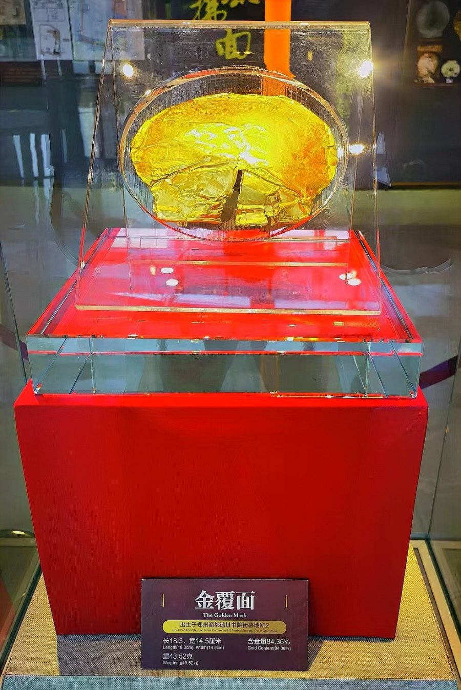 9月14日,郑州市文物考古研究院举办的郑州商都遗址书院街墓地发掘出土文物”金覆面“展在郑州商都遗址博物院开展。这是中国境内目前考古发现最早的“金覆面”,本次展览也是“金覆面”发掘出土以来的首次公开展出。