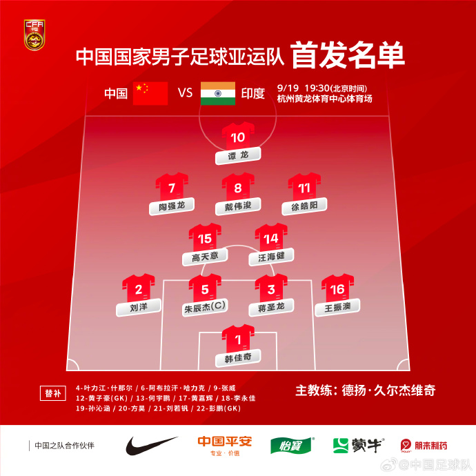 9月19日19:30,中国男足亚运队在杭州黄龙体育场打响本届亚运之旅第一枪,对手为印度队。19日是杭州亚运会的首个比赛日,国足亚运队也成为中国体育代表团中最早登场亮相的队伍之一,备受关注。他们与印度、缅甸、孟加拉国同处A组,6个小组的前2名及成绩最好的4支小组第三名球队将晋级16强。