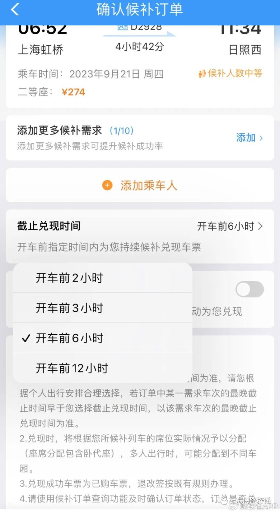 12306提供的“候补”买票服务有车票截止兑现时间