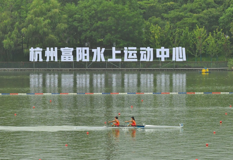 一篙残腊雨,千古富春江。建在富春江上的富阳水上运动中心,集一流的赛道与优美的江景于一身,这里也恰是名画《富春山居图》的实景地。9月24日上午,杭州亚运会的首金就在这里产生,杭州姑娘邹佳琪与队友邱秀萍在赛艇项目女子轻量级双人双桨的比赛中一路领先,昂首夺金。“从小喝着富春江水长大”的邹佳琪说,在富春江上夺冠,这块金牌更有意义。
