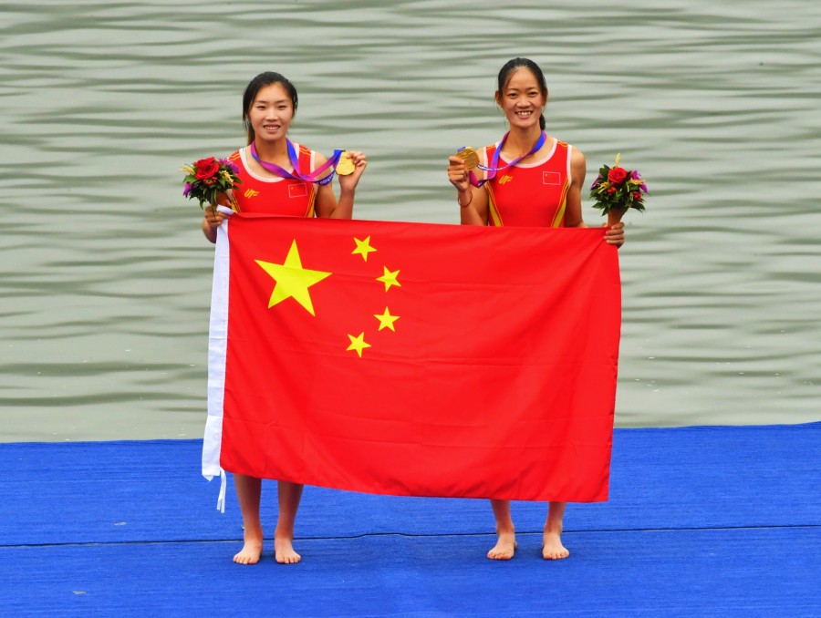 媒体高度关注,现场观众非常热情。就是这样的热烈氛围中,女子轻量级双人双桨的比赛正式开始。将夺取首金的任务交给杭州本地选手,这显然是精心的安排,也显现出对她们实力的充分信任。而邹佳琪与邱秀萍这对组合,也用实际表现拒绝了所有出现意外的可能。从一出发就处于领先优势的两人,,最终以7分06秒78的成绩率先冲过终点。受天气、水流等因素影响,比预赛时的6分52秒43,这个成绩慢了不少,甚至也远低于预赛第二名伊朗选手当时的成绩,但决赛中对第二名的领先优势也扩大到了9秒多,这也足见两人的实力。