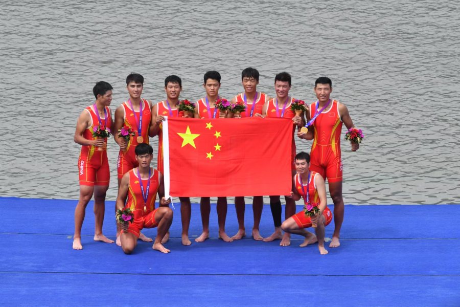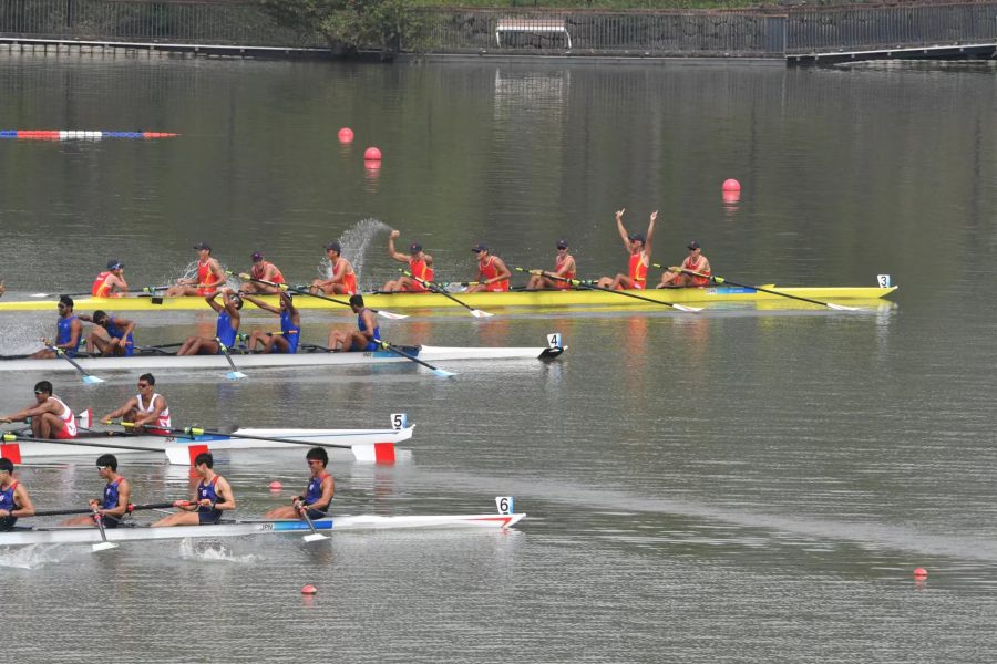 在20日的预赛中,冀高星和队友们就显示出了强大实力,以领先第二名印度队近4秒的成绩获得第一进入决赛。而决赛开始后,处于第三道中国队虽然一出发就处于领先位置,但比赛进程并不像想象中的那么顺利,不仅在身边第四道的最有力的竞争对手印度队紧追不舍,五道的印尼队更是早早发难,在前500米甚至有一度超越之势。不过随着比赛的延续,中国队的体能和配合默契的优势逐渐显现出来,最终以领先近一条艇的优势如愿摘取了金牌。
