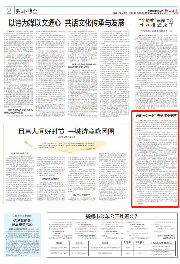 老人和幼儿既是每个家庭关注的对象,也是基层社区治理服务的重点,是关系千家万户的民生实事。近年来,郑州市聚焦群众“急难愁盼”问题,充分挖掘优势资源,以服务“一老一小”带动提升千家万户的获得感、幸福感、安全感。