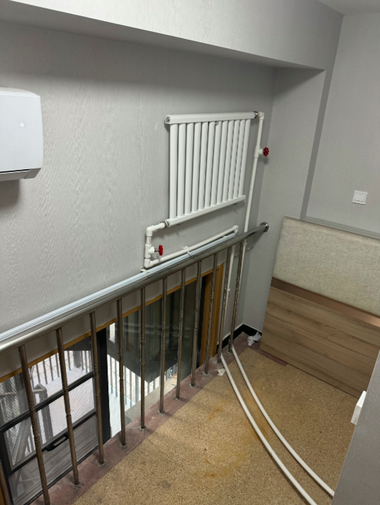 记者今天在现场看到,推开所谓“楼梯间房”的房门,的确需下行一段楼梯,之后便是一个摆放床铺的狭窄空间,三个房间上下并不连通,未形成“楼道”。目前三个房间均已清空,没有床铺,仅剩一台空调。