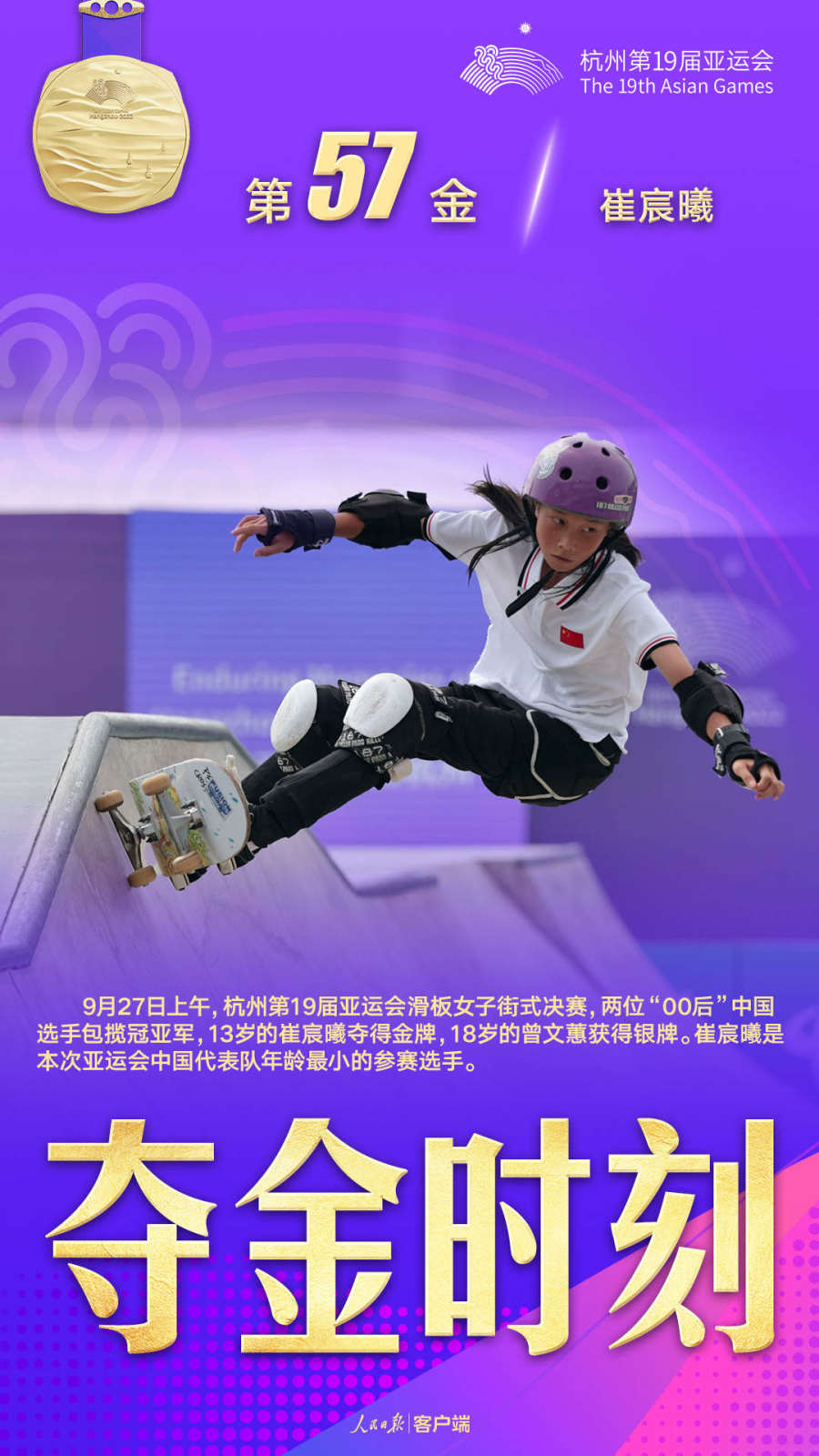 值得一提的是,2009年12月出生的崔宸曦是杭州亚运会中国体育代表团中最年轻的运动员。