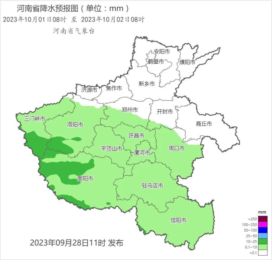 10月1日,黄河以南阴天有小雨;其他县市多云转阴天,局部有阵雨。