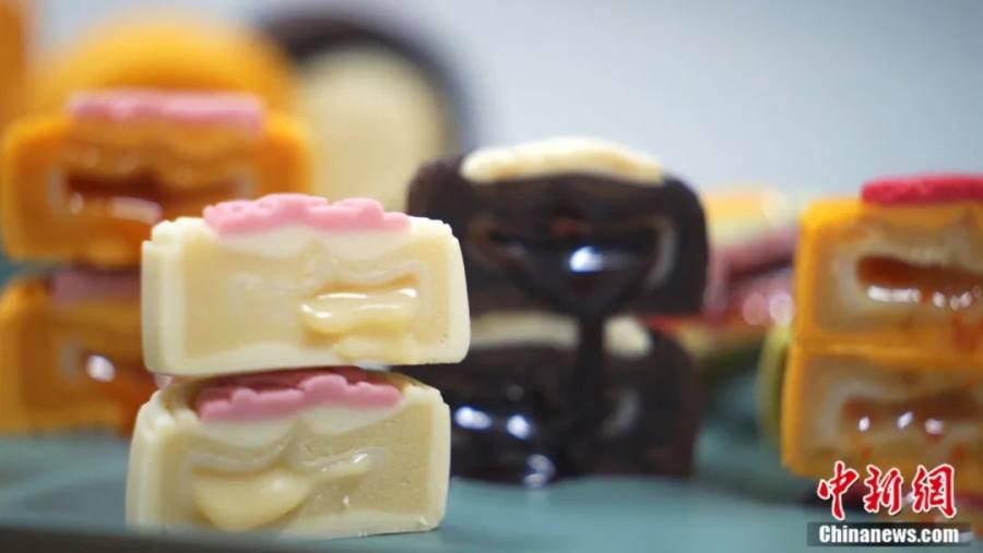 此外,今年还新推出了“流心月饼”。“流心月饼的特点是少油、少糖、少面粉。”石家庄佳香食品有限公司生产厂长许志刚介绍,流心月饼饼皮的主要成分是白芸豆,白芸豆经过泡发、去皮、蒸煮、洗沙、炒制后,还要搭配黄油、牛奶、蛋黄等材料。目前,流心月饼有巧克力、奶黄、蔓越莓、芝士等口味,每种口味的外形不同,口感更是各有特色。
