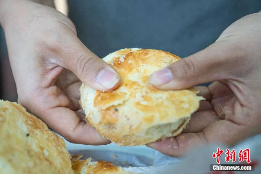 从外地开车专程赶来的刘先生一次性购买了50包月饼,他笑着说:“大家说这是河北的‘月饼天花板’。买的这些月饼不光是咱自己吃,还有送给家人和朋友的,这是‘网红月饼’,送人也拿得出手。”
