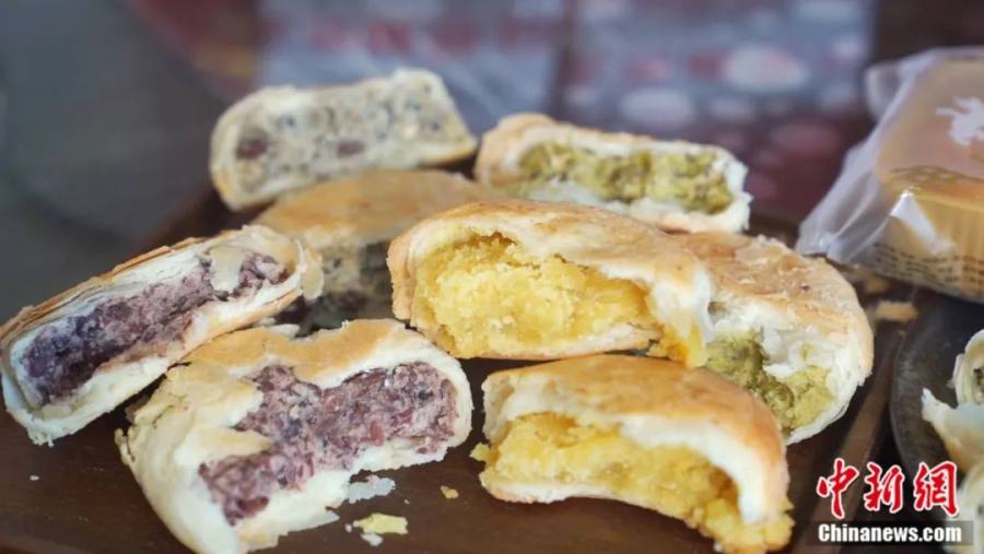 据了解,目前黄庄月饼以酥皮和蛋糕皮为主,有红豆、豌豆、绿豆、山楂、红枣、五仁、玫瑰、板栗、椒盐、榴莲、木糖醇等20余种口味,其中豌豆、蛋黄、椒盐以及经典的五仁馅最受消费者喜爱。