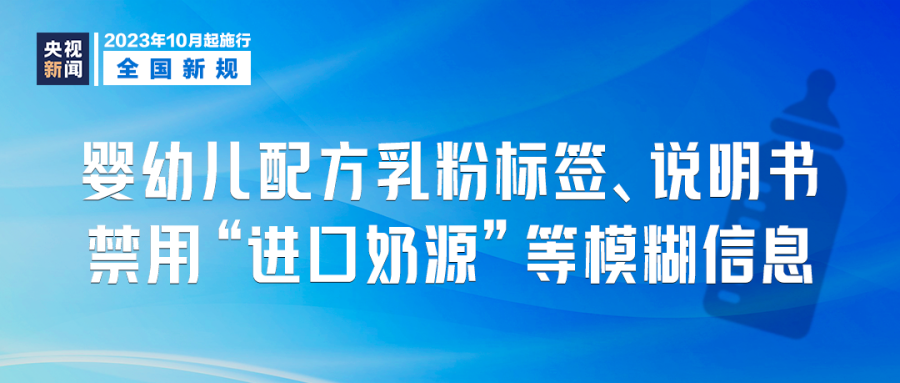 修订后的《婴幼儿配方乳粉产品配方注册管理办法》10月1日起施行。明确标签、说明书不得使用“进口奶源”“源自国外牧场”“生态牧场”“进口原料”“原生态奶源”“无污染奶源”等模糊信息;不得使用婴儿和妇女的形象,“人乳化”“母乳化”或者近似术语表述。
