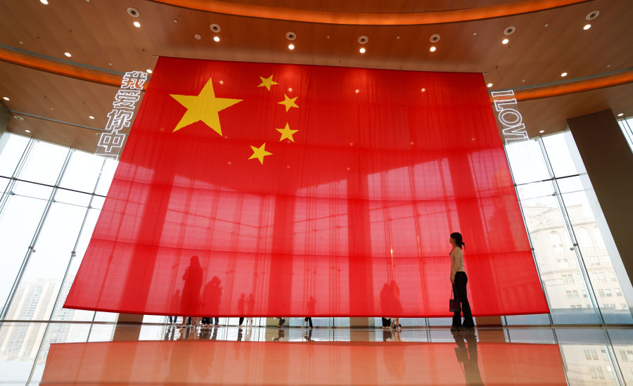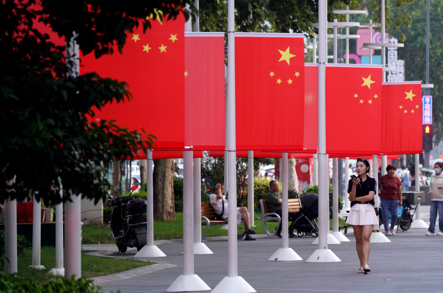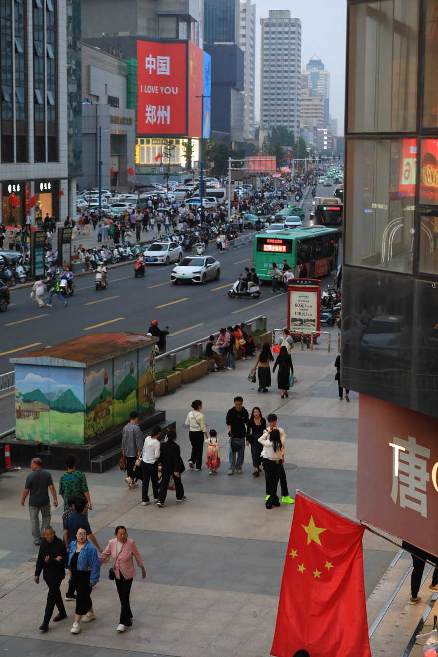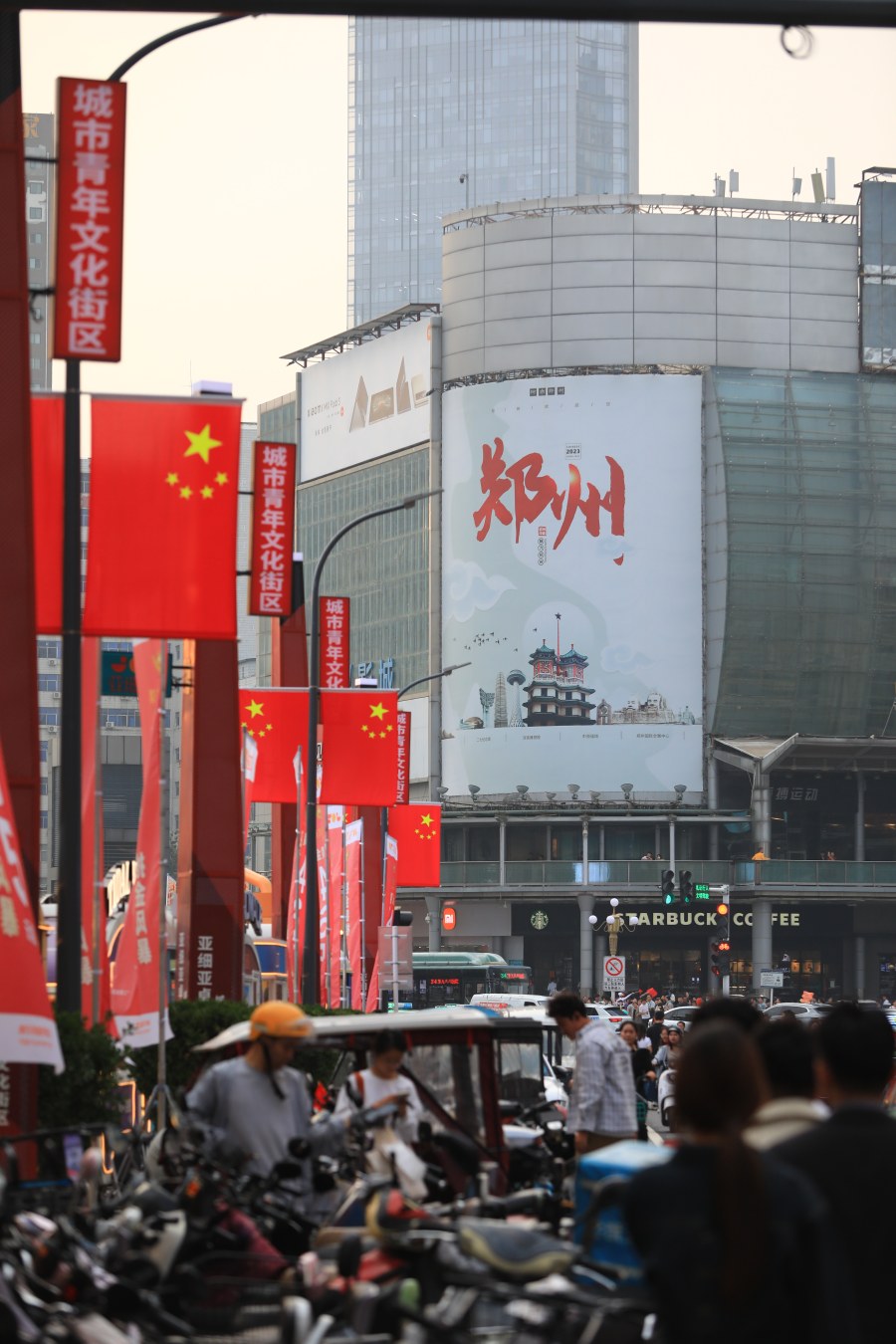 郑州大街小巷飘扬“中国红”