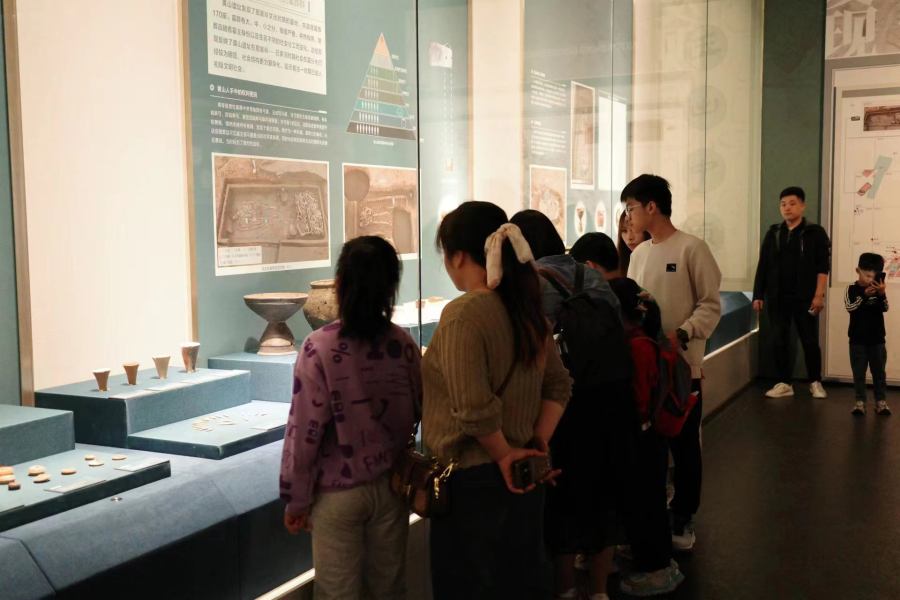 本次展览注重考古成果的传播和展示,加强对考古知识的普及,营造出公众参与考古体验氛围,现场设置弓箭体验区、制玉体验台等多个互动体验区,让观众获得视觉、听觉、触觉等全方位、沉浸式的文化体验。