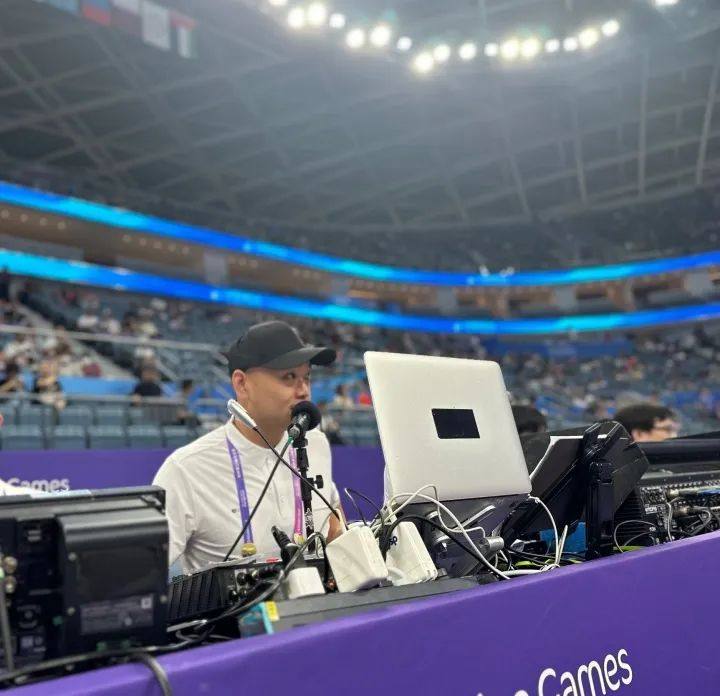 在亚运会期间,阿亮在篮球馆的主要工作在PA、MC、DJ的身份中来回切换,有时候还会兼职,“国内顶尖的团队都在这儿了,有常年为国家队服务的老师,有全国PA、MC、DJ播报的鼻祖。这一次服务亚运会,有幸在这国内第一梯队团队里有自己的名字,快乐和压力共存。”