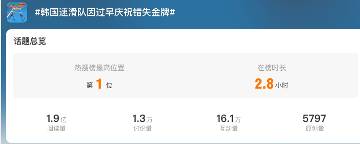 因过早庆祝,韩国速滑队最终错失亚运会金牌,以0.01秒的差距,败给中国台北队。