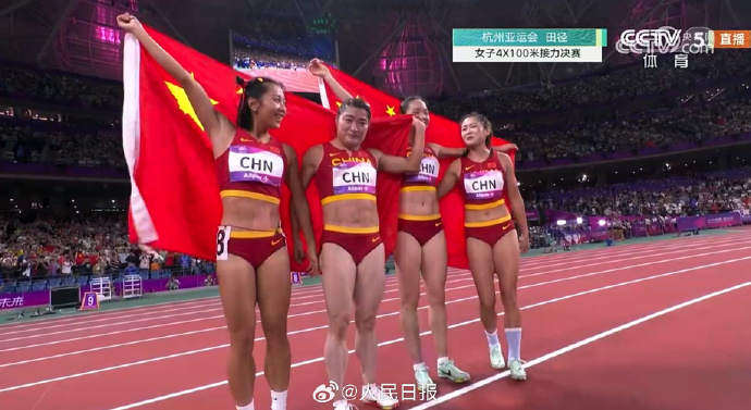 10月3日晚,杭州亚运会田径4×100米接力决赛进行,由梁小静、韦永丽、袁琦琦和葛曼棋组成的中国队以43秒39的成绩夺得冠军,时隔9年重返亚洲之巅,也是第8次夺得该项目的亚运会金牌。