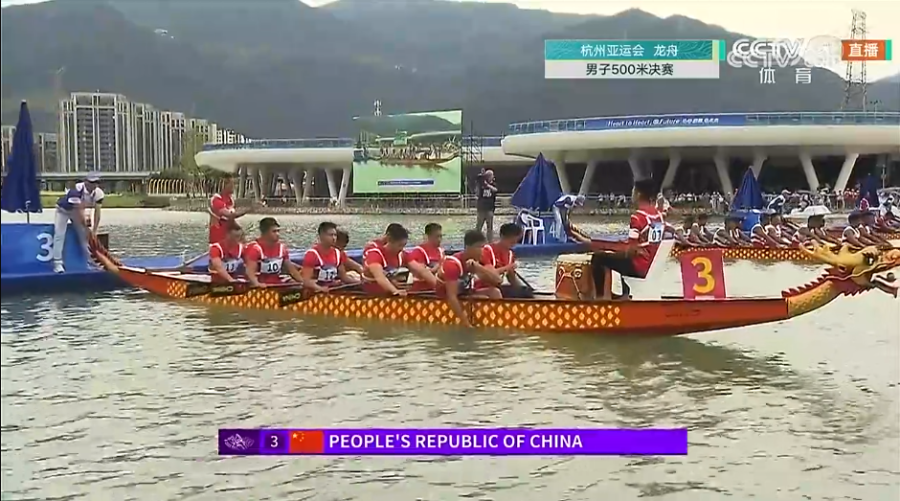 10月5日,杭州第19届亚运会男子龙舟500米直道竞速决赛,中国队夺得金牌。