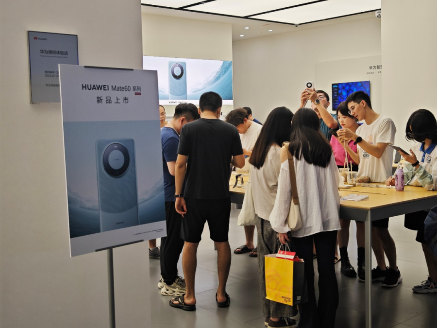 在该门店,记者看到一张桌子上摆放着10台Mate 60系列手机,每部手机前都站着前来试机的消费者,华为“Mate 60 Pro先锋计划”上线一个月后仍然热度空前。销售向记者坦言,今年十一期间门店的人流量比去年“好上很多”。