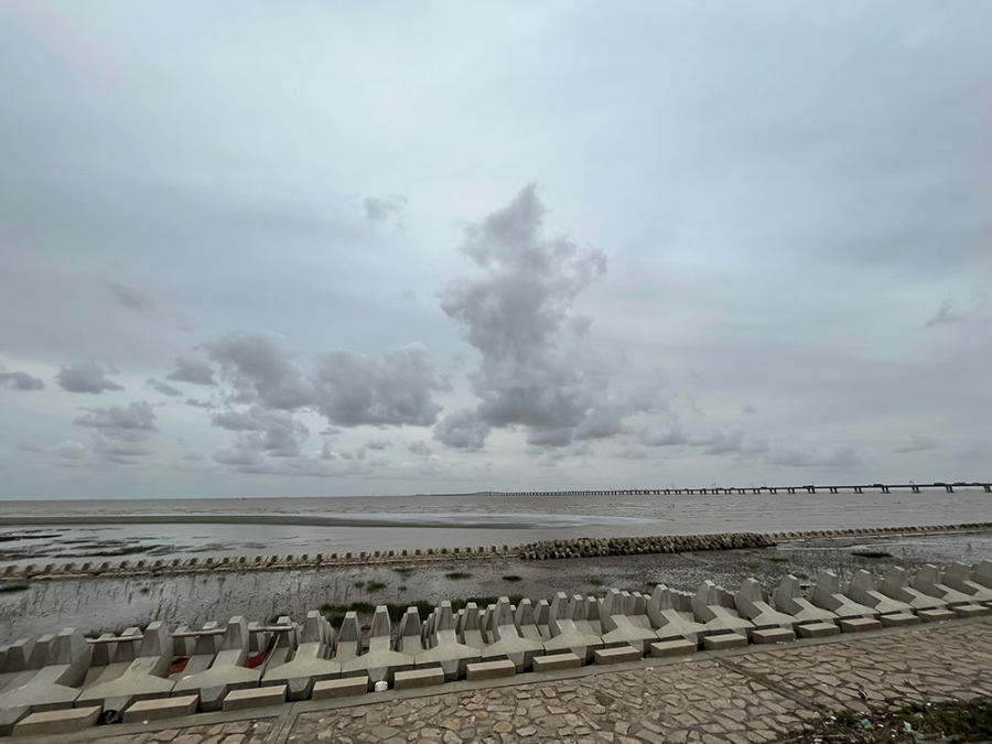 2023年10月6日,事发滩涂,位于消浪坝外。 澎湃新闻记者 邹娟 摄