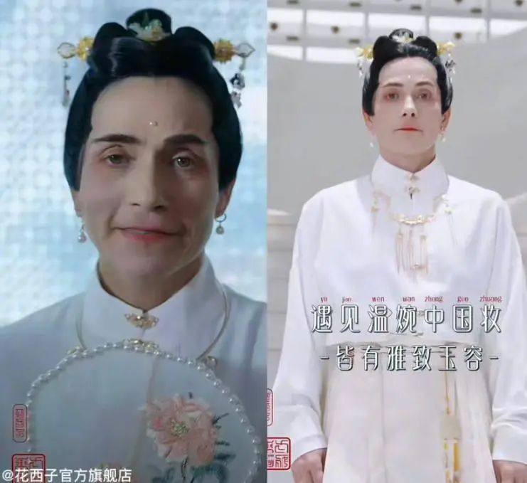视频中,丘索维金娜身穿一袭白色的汉服,梳着高高的发髻,手执团扇在古韵古香的环境中品茶赏玩。广告宣传语还表示,要以温婉中国妆容,扬东方之美展韧性之姿。但视频发出后,立刻引来网友吐槽:“用外籍友人宣传东方审美不是不可以,但是丘索维金娜的妆容实在看不出美感……”
