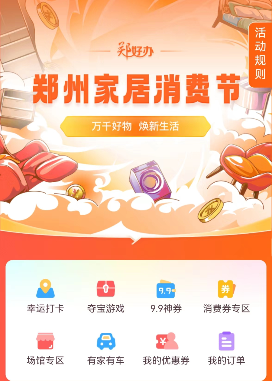 参与方式:活动期间,用户可在郑好办“家居消费节”活动专区领取消费券,多重优惠还可叠加使用!(具体叠加权益请咨询对应家居商场)