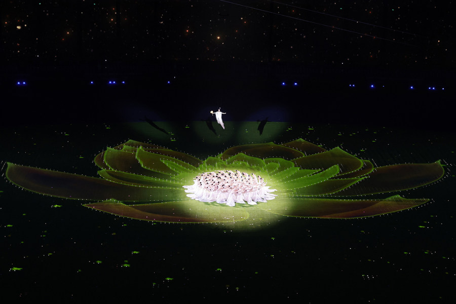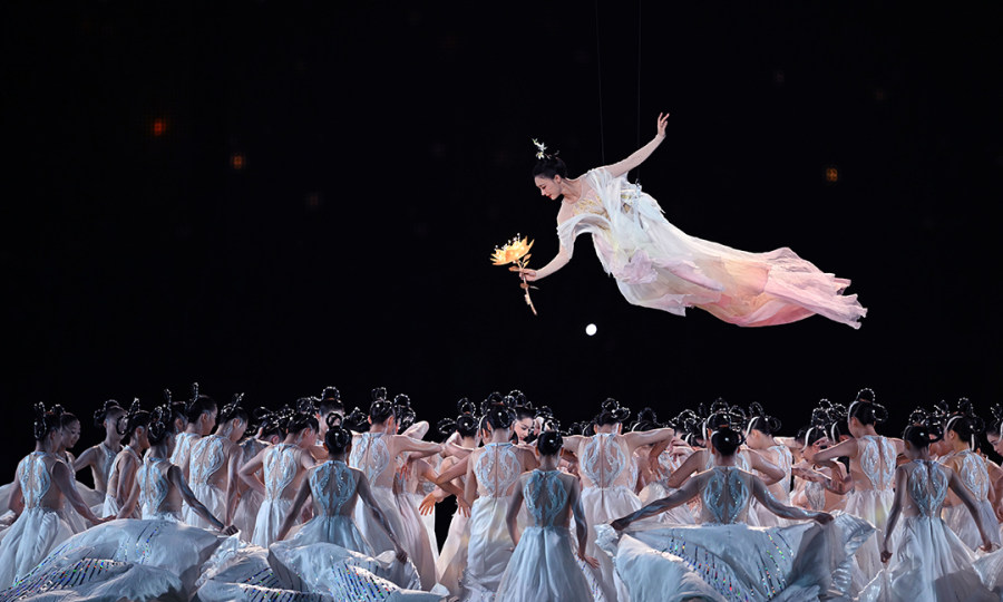2023年10月8日,演员在杭州亚运会闭幕式上表演。新华社记者 程敏 图