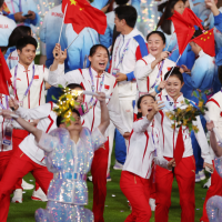 ▲ 中国体育代表团成员在闭幕式上入场