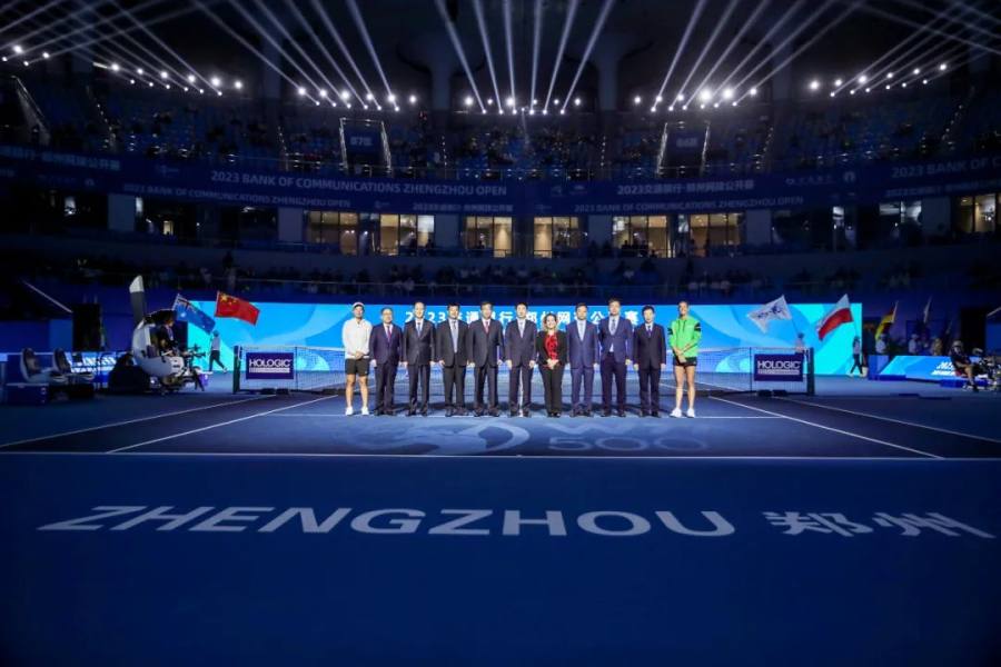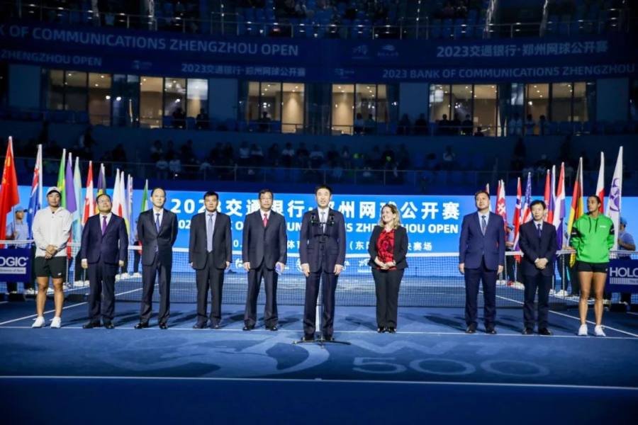 郑州市人民政府副市长陈红民致欢迎词,中国网球协会主席刘文斌致辞,并预祝2023郑州网球公开赛取得圆满成功,河南省人民政府副省长宋争辉宣布2023交通银行郑州网球公开赛正式开幕!