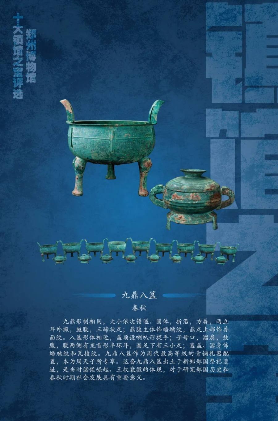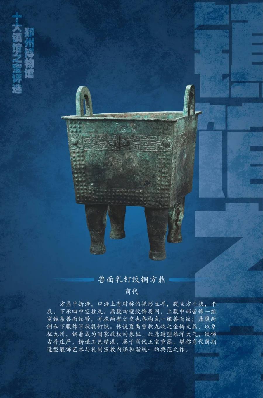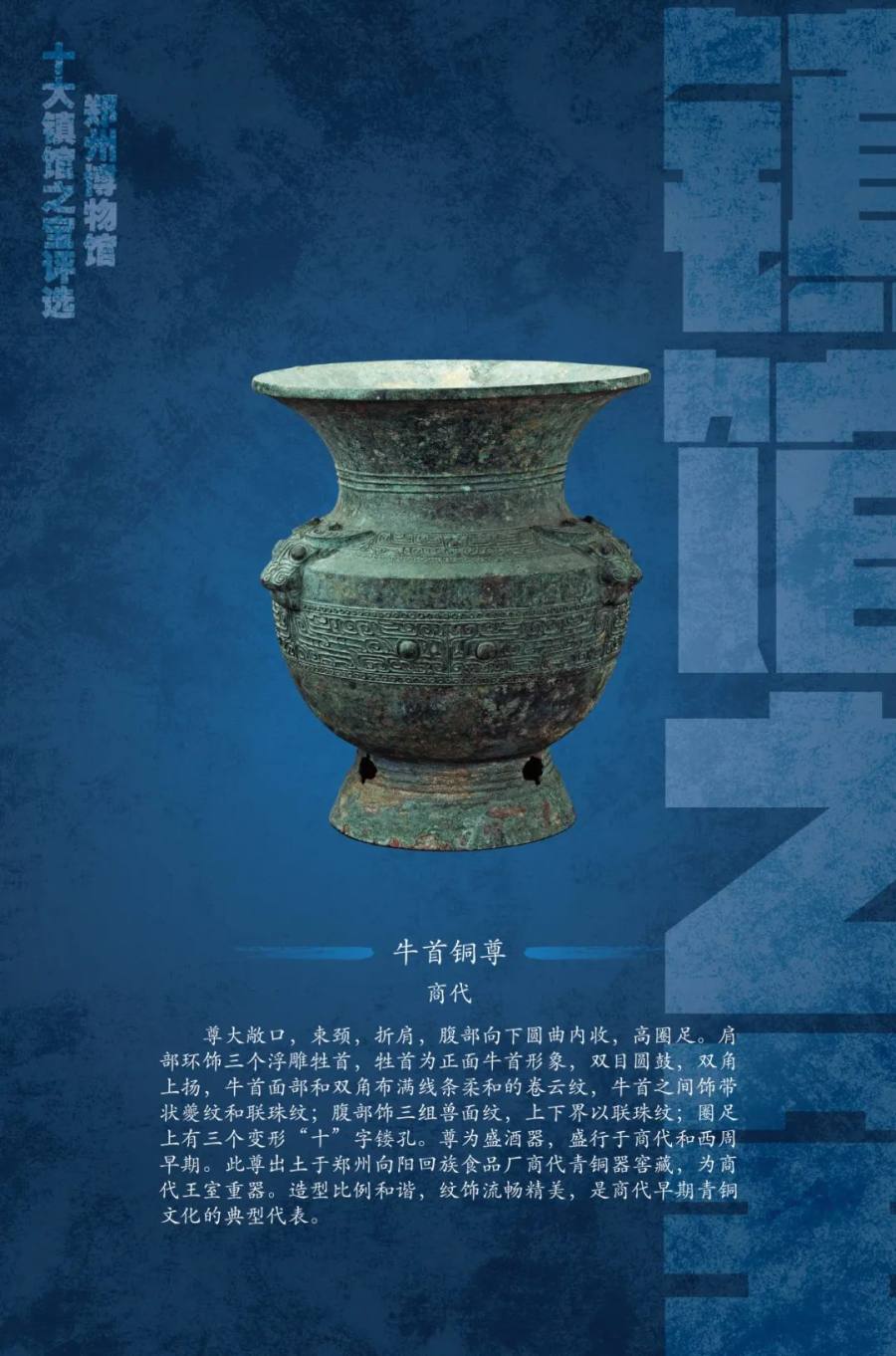 郑州博物馆的十大“镇馆之宝”具有典型性和代表性,彰显出华夏文明的博大厚重,充分体现了馆藏文物特色,使公众更多地了解郑州博物馆,感受中原文化的魅力。