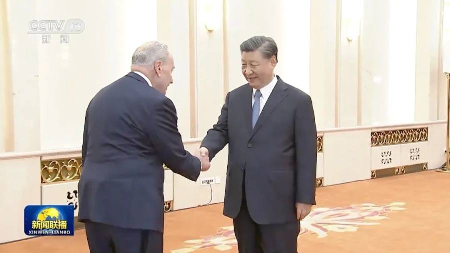 10月9日下午,国家主席习近平会见了美国国会参议院多数党领袖舒默率领的美国国会参议院两党代表团。